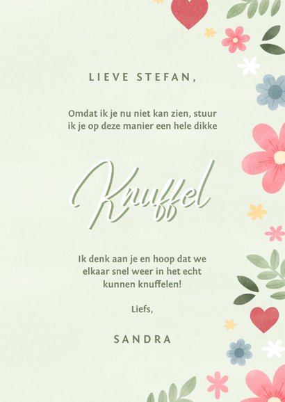 Vrolijke fotokaart'dikke knuffel' bloemen en | Kaartje2go